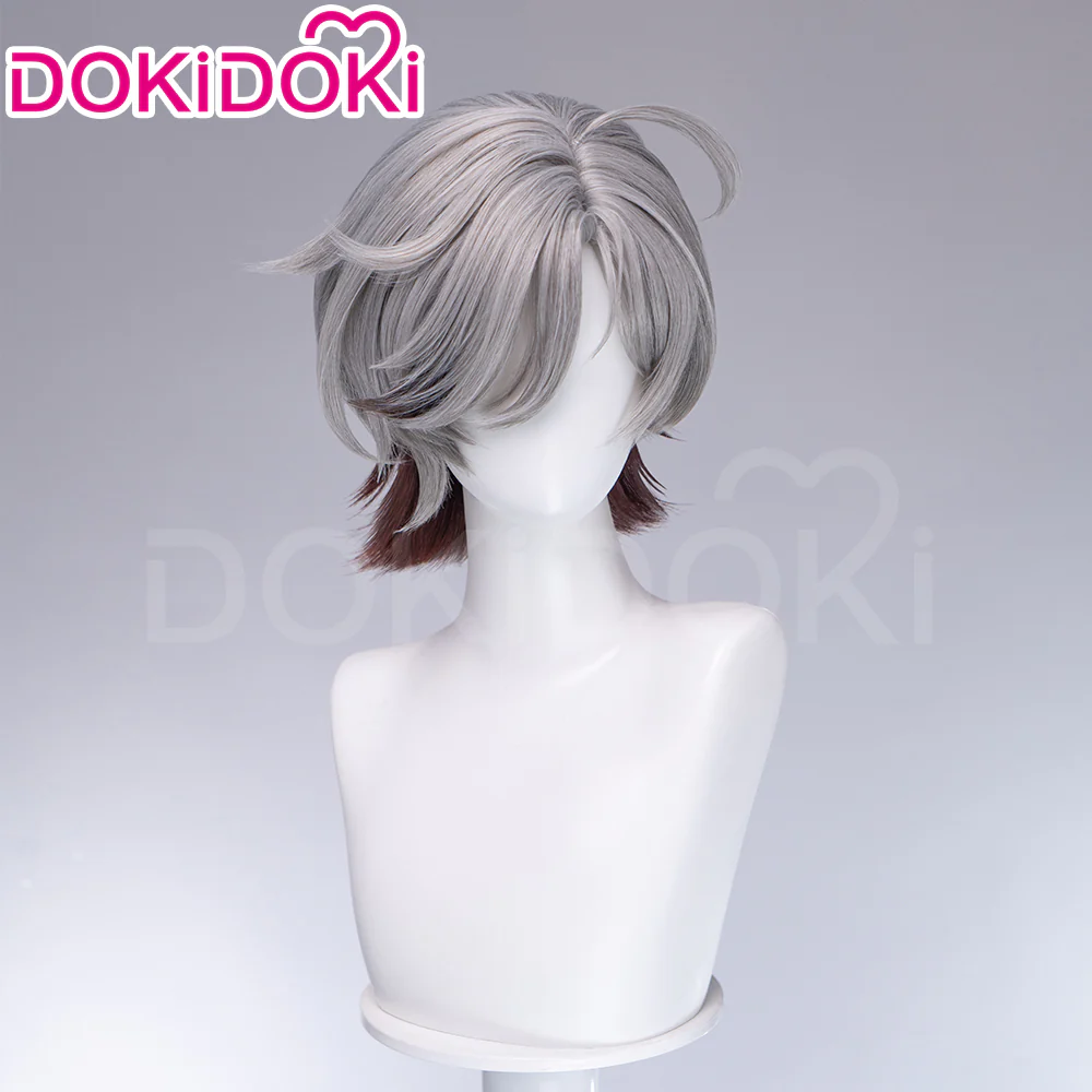DokiDoki Game Genshin Impact Cosplay Illuga Wig Short Grey Brown Hair